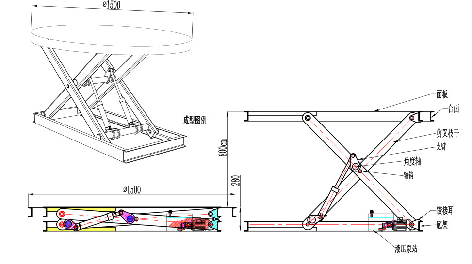 4、舞台升降平台滚轴、滚珠、转盘等台面任意配置,可满足不同工况使用要求