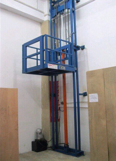 导轨式液压升降平台的主要结构形式为液压油缸牵引与载货平台连接的链条驱动载货平台沿两侧的固定轨道做垂直升降。具有结构简单、成本低廉、占地空间小等优点,广泛应用于厂房隔层、仓储物流及工矿企业的生产线,汽车销售行业及其他行业也可作送货电梯,尤其适用于无法挖地基的场所。升降平台的规格和型号根据客户要求特殊制作